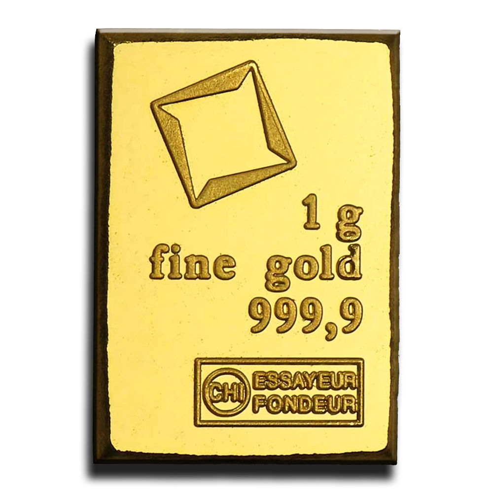 Introducing the 1g Valcambi .9999 Fine Gold Bar, a single breakaway piece from a Valcambi CombiBar