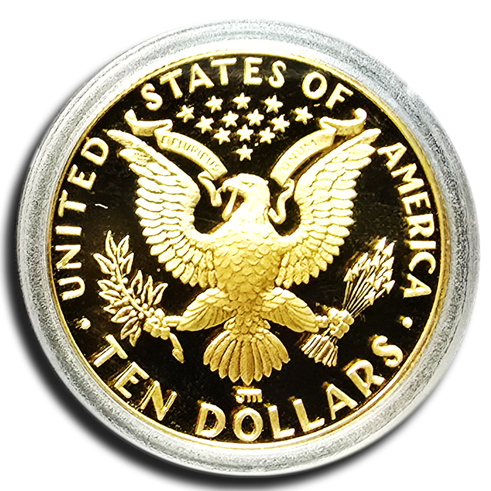 Introducing the 1984-W $10 Proof Olympic Gold Coin, a beautiful commemorative coin issued by the United States Mint to celebrate the XXIII Olympiad held in Los Angeles in 1984. Struck in brilliant proof condition at the West Point Mint, this coin honors the Olympic spirit with a classic design.