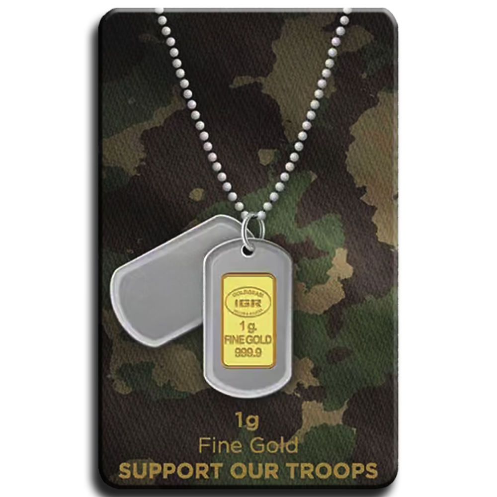 1g IGR .9999 Fine Gold Bar - Support Our Troops Packaging