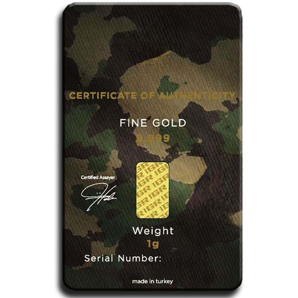 Introducing the 1g IGR .9999 Fine Gold Bar with exclusive “Support Our Troops” camouflage packaging